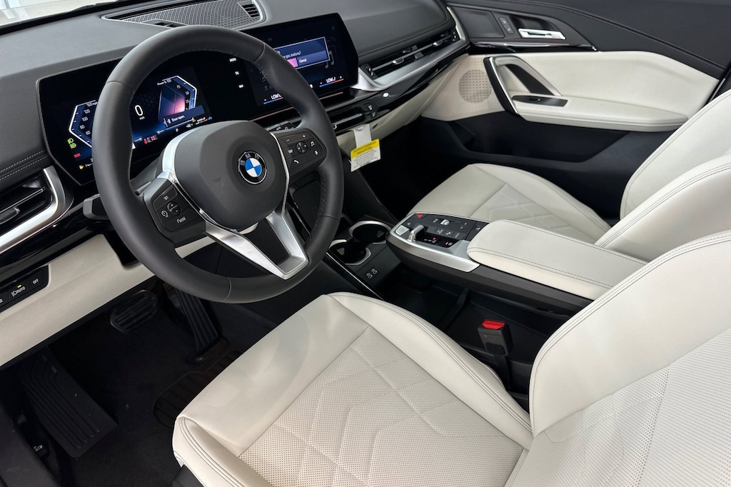 WHEELS: 19" X 8.0" Y-SPOKE BI-COLOR -inc: Style 867, Tires: 245/45R19 All Season, UNIVERSAL GARAGE-DOOR OPENER, TRANSMISSION: 7-SPEED DUAL CLUTCH (STD), SMOKE WHITE, PERFORATED VEGANZA UPHOLSTERY, MINERAL WHITE METALLIC, CONVENIENCE PACKAGE -inc: Remote Engine Start, Heated Steering Wheel, Panoramic Moonroof, BLACK HIGH GLOSS TRIM W/AMBIENT LIGHT, Wireless Phone Connectivity, Wireless Device Charging, Widescreen Display. This BMW X1 has a powerful Intercooled Turbo Premium Unleaded I-4 2.0 L/122 engine powering this Automatic transmission.