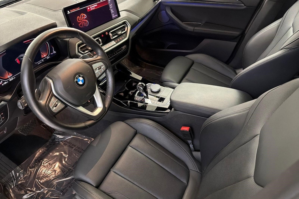 This 2023 BMW X3 sDrive30i is a One Owner vehicle, exterior, and interior. Key features include PANORAMIC MOONROOF, BLACK PERFORATED SENSATEC UPHOLSTERY, PREMIUM PACKAGE, FINE WOOD OPEN-PORED ASH GRAIN TRIM, HEATED STEERING WHEEL, HEATED FRONT SEATS, PARKING ASSISTANCE PACKAGE, Rear Parking Aid, Blind Spot Monitor, Cross-Traffic Alert, and much more!